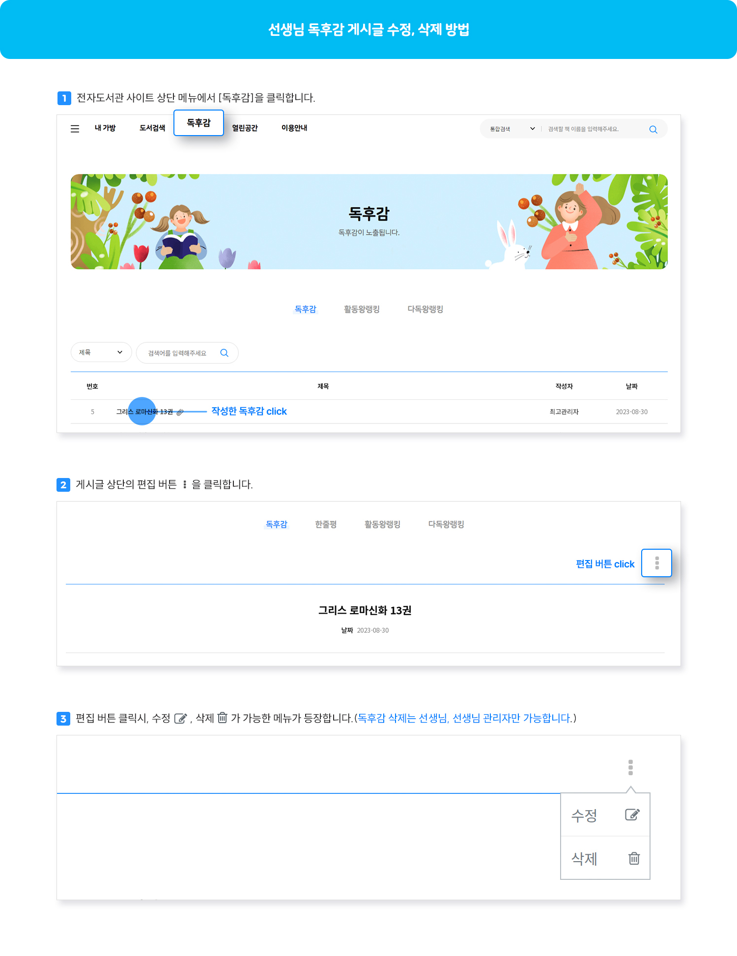 선생님 [북 큐레이션], [추천도서] 도서 등록방법
